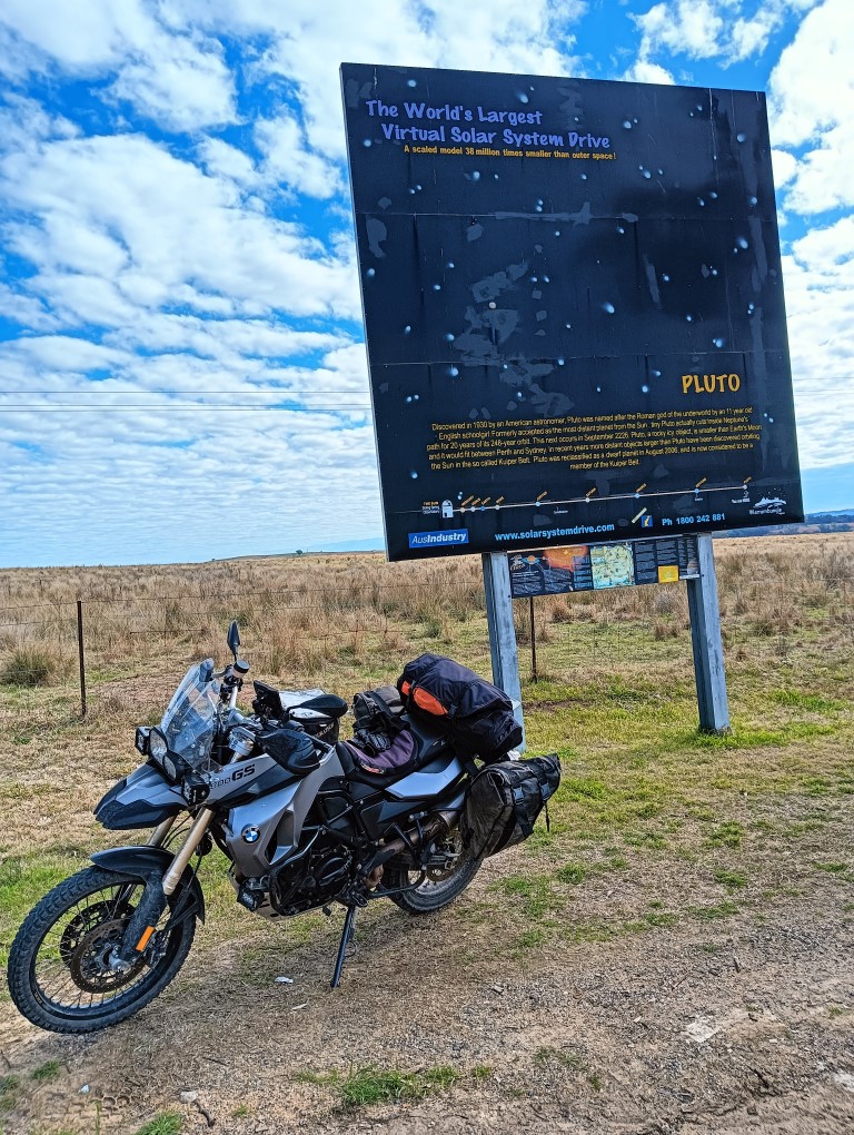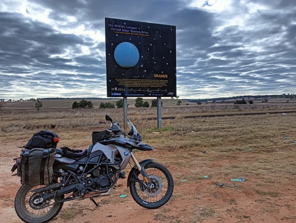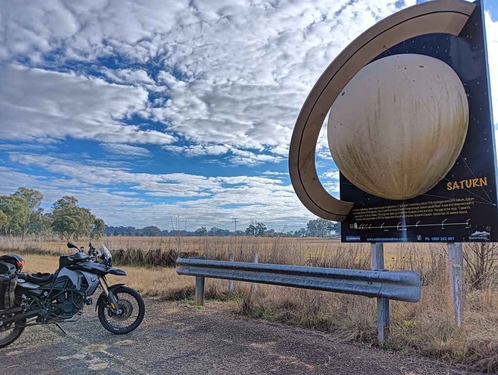 I make a short detour to the CSIRO Radio Telescope near Parkes and spend a good half hour wandering around. My interest in this place had first piqued way back in 2000, after watching the iconic Australian movie, The Dish. I stopped here back in 2001 on my way to Alice. (I’d borrowed the wife’s little Yammy Fazer 600 for the journey)