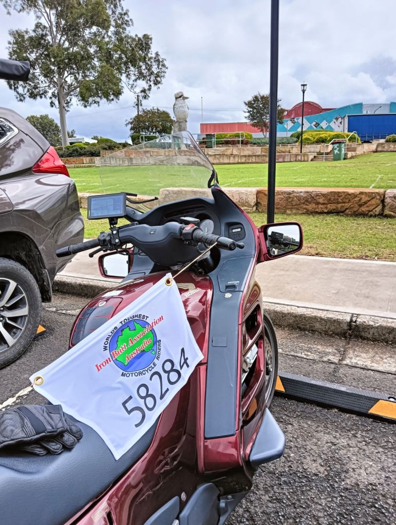 I arrive in Goulburn and grab a photo of the Big Merino and refit the comms to my helmet. A bit of music for the next leg will be great.